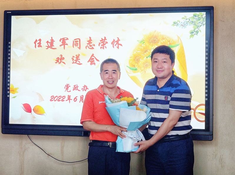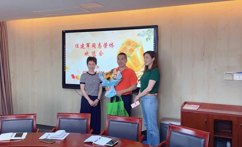 6月24日下午,一场温馨而隆重的荣休欢送会在行政办公楼401会议室举行,党政办全体人员齐聚一堂,为任建军同志举行荣休欢送会。