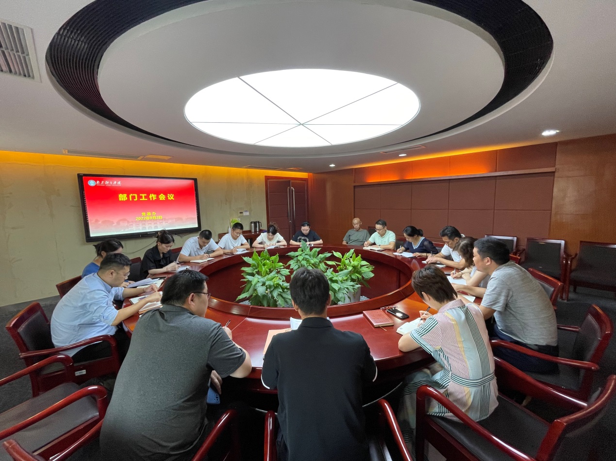 9月2日下午,党政办在行政办公楼401会议室召开部门工作会议。会议由党政办主任丁永亮主持,部门全体成员参加会议。