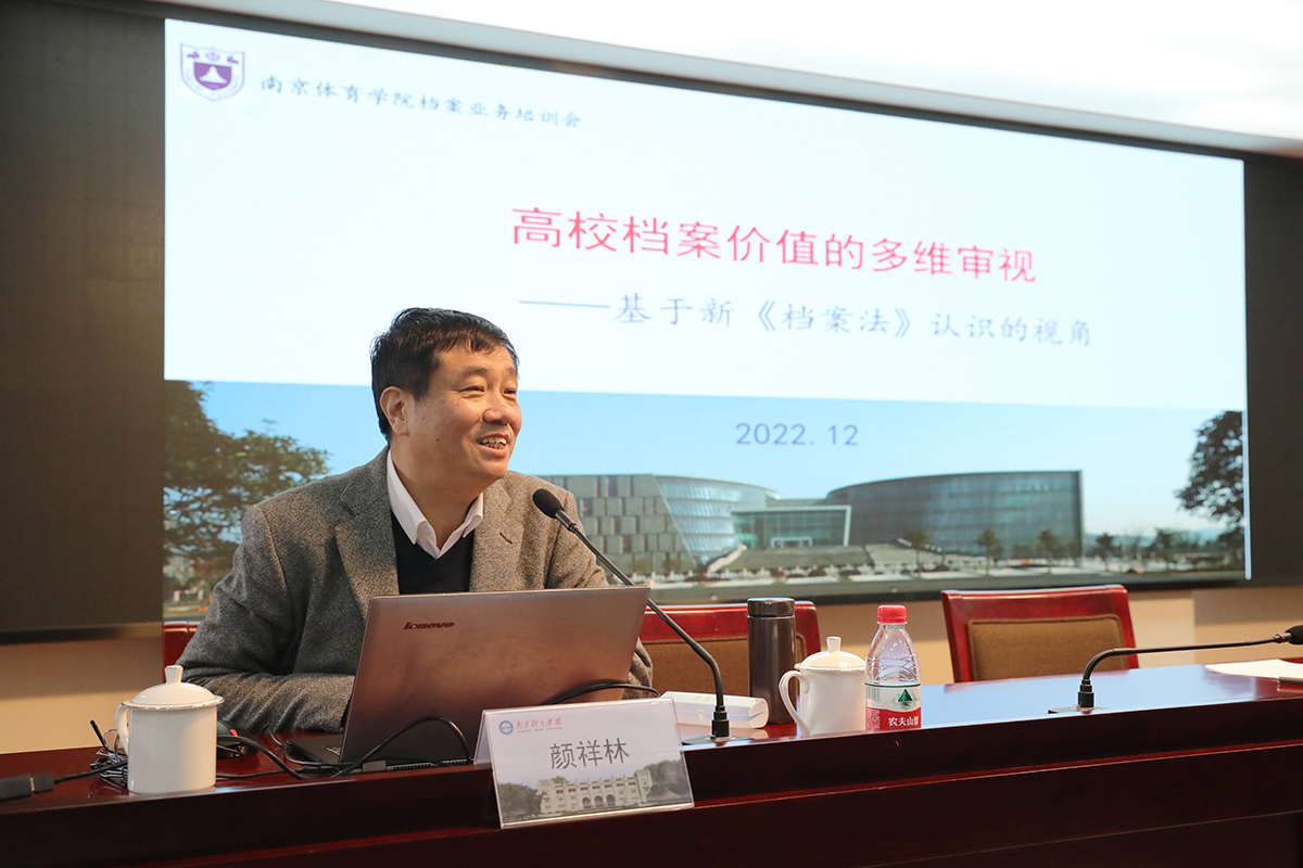 为深入贯彻落实习近平总书记关于做好新时代档案工作的重要指示批示精神,推动“十四五”时期学校档案事业更加规范、更高质量发展,122日上午,我校在行政楼101会议室召开2022年档案工作业务培训会,校党委副书记兰亚明出席会议并讲话,南京大学颜祥林教授受邀作专题讲座,党政办副主任叶瑛主持培训会,校各单位、各部门负责人与档案管理员参加了培训