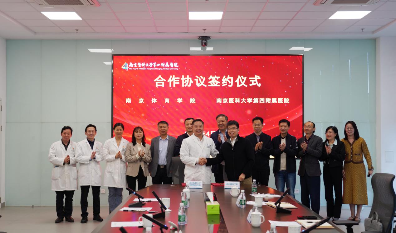 4月27日上午,我校与南京医科大学第四附属医院隆重举行合作框架协议签约仪式。校党委书记朱传耿,南京江北新区管委会副主任王伟出席仪式并致辞。校党委副书记兰亚明、党政办主任王猛、运动康复医院院长王家祥、运动健康学院院长汤强,南京江北新区卫生健康和民政局局长陆小军、宣传和统战部副部长袁征,南京医科大学第四附属医院院长闻浩等出席了签约仪式。