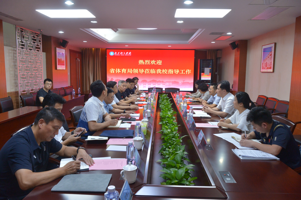 杨国庆代表学校对张海涛一行的到访表示热烈欢迎,对省体育局长期以来对学校建设发展的大力支持表示衷心感谢。他简要介绍了学校的地理位置、历史沿革与文化渊源、办学办队概况。他表示,学校将高度重视省属体育协会工作,希望省体育局能够一如既往地关心、支持学校的建设与发展,给予多方面政策支持,帮助学校事业高质量发展。