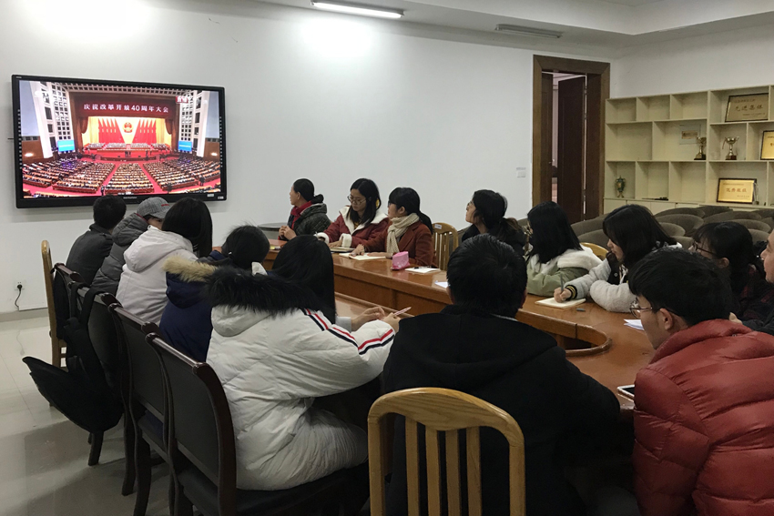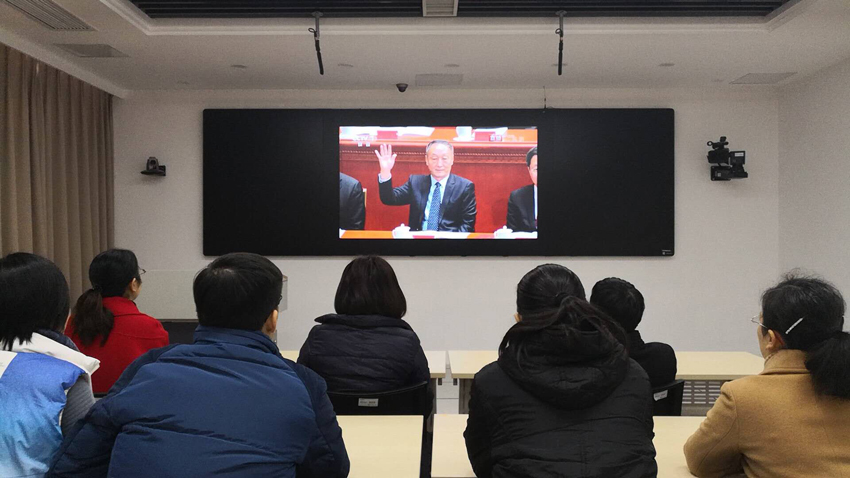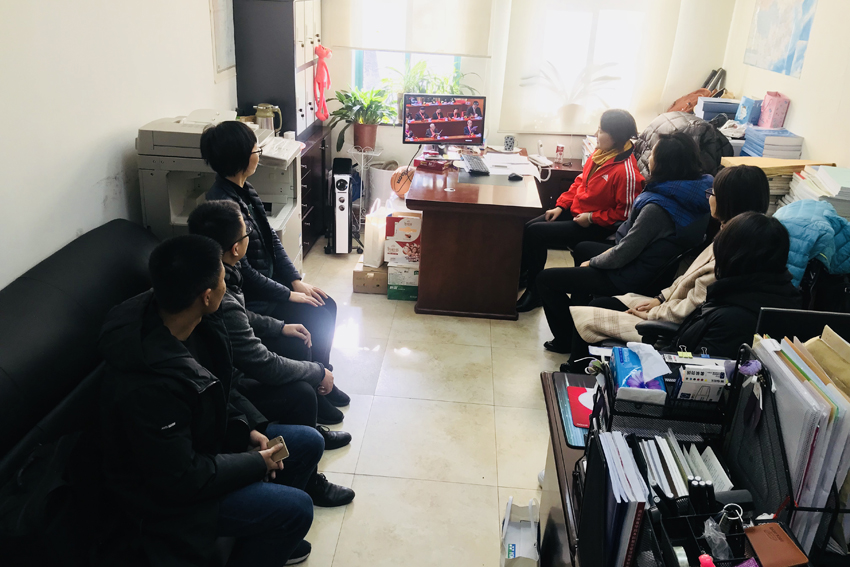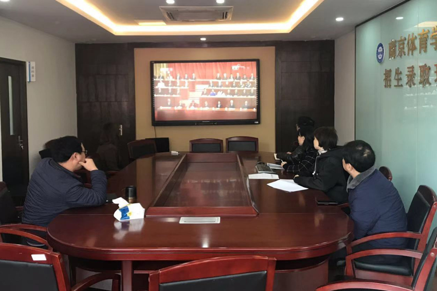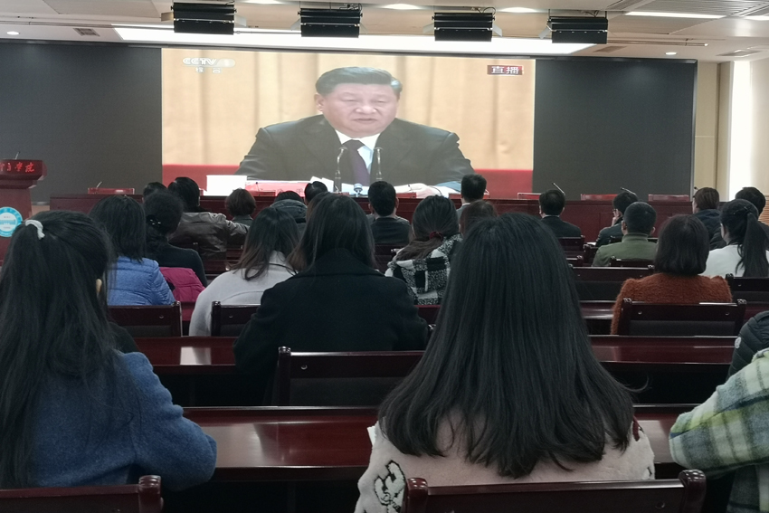 校党委书记朱传耿和校党委常委史国生、兰亚明、李江、金松、肖爱华、潘林珍、黄步龙和机关党总支干部职工在办公楼101会议室集体收看了大会盛况,认真学习了习近平总书记的重要。校各单位、各部门和师生员工也纷纷以各种形式收看了大会直播。
