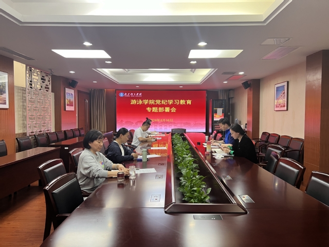 为深入学习贯彻习近平总书记关于党纪学习教育的重要讲话和重要指示精神,严格落实校党委关于党纪学习教育相关要求,4月16日,游泳学院党总支在行政办公楼301会议室召开党纪学习教育专题部署会。学院全体管理干部参加会议。本次会议由学院党总支书记骆晓娟主持。