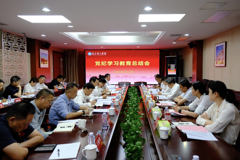 9月26日,我校召开党纪学习教育总结会,深入学习贯彻习近平总书记关于党纪学习教育的重要指示精神,全面落实中央、省委党的建设工作领导小组会议要求,总结我校党纪学习教育工作,对巩固深化党纪学习教育成果进行部署。党委书记刘红明在会上作党纪学习教育总结报告。党委副书记、校长杨国庆,党委领导班子成员兰亚明、肖爱华、周和林、鲍勤、刘健、陈爱国、许立俊、王猛、殷怀刚参加会议。