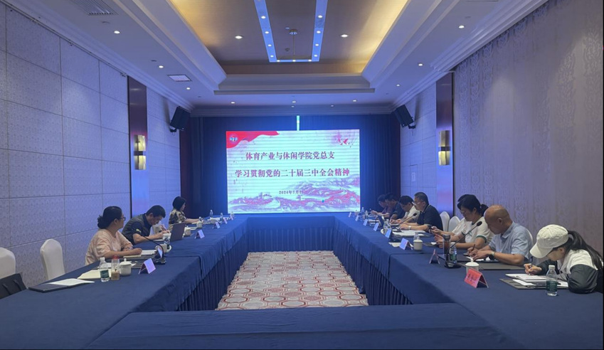 7月29日,体育产业与休闲学院党总支召开理论学习中心组第8次学习(扩大)会,传达学习党的二十届三中全会精神,部署落实学院学习宣传贯彻相关举措。学院领导班子、各系正副主任、学工办主任及骨干教师代表参加会议,会议由学院党总支书记王进主持。