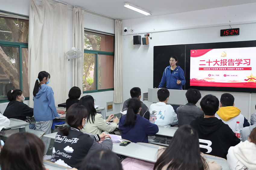 许安琪在课上作了《二十大报告学习》专题报告。她结合大会主题,带领同学们共同回顾了十九大以来极不寻常、极不平凡的五年历程,介绍了新时代十年的伟大变革,并向同学们详细阐释了坚定不移做到“六个坚持”、深入透彻理解“五个必由之路”的重大意义和时代价值。