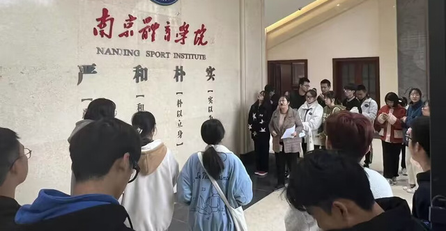 习近平总书记在党的二十大报告中指出:“广泛践行社会主义核心价值观,弘扬以伟大建党精神为源头的中国共产党人精神谱系,深入开展社会主义核心价值观宣传教育,深化爱国主义、集体主义、社会主义教育,着力培养担当民族复兴大任的时代新人”。为了深入宣传学习贯彻党的二十大精神,进课堂、进头脑,弘扬以伟大建党精神为源头的中国共产党人精神谱系,11月17日,马克思主义学院朱晓林老师给运动健康学院近百名大一新生宣讲党的二十大精神,带领学生走进校史陈列馆和中国近代体育陈列馆,充分挖掘校史资源的思想政治教育价值。