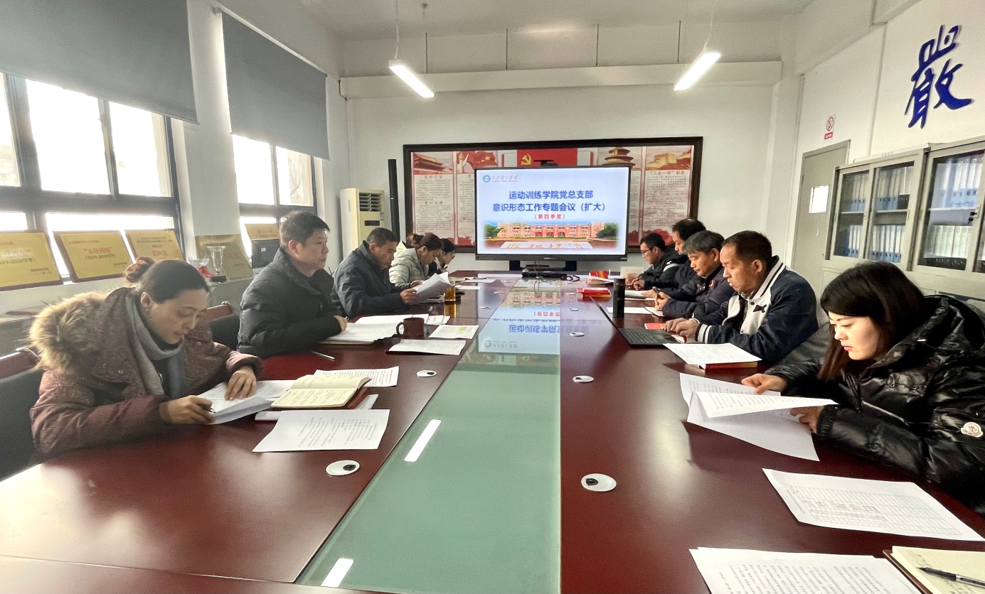 12月1日下午,运动训练学院党总支在仙林校区教学楼315会议室召开党总支委员会(扩大)会议,进行学院第四季度意识形态工作分析、研判。会议由学院党总支书记张亚军主持。党总支委员和各党支部书记参加会议。
