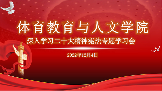 2022年是我国现行宪法颁布施行的四十周年,体育教育与人文学院把学习宣传贯彻党的二十大精神,推动全面做好宪法宣传教育工作作为开展教育教学的重要内容,深入做好学生思想政治教育引领,引导学生们将党的精神铭刻于心,让法治信仰在校内蓬勃生长,促进学院全体师生一起学法、知法、尊法、守法、用法,为建设法治校园贡献力量。