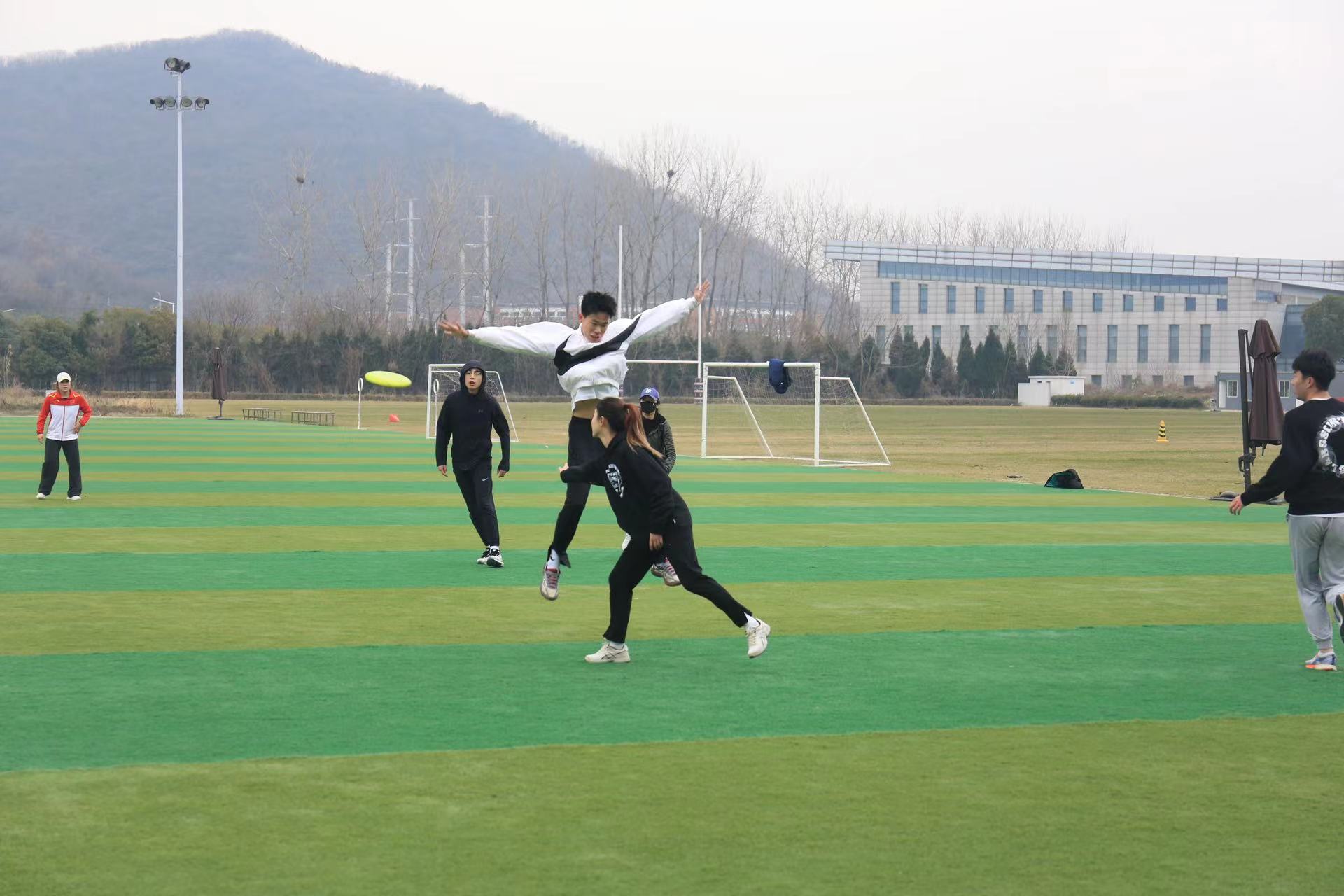 随后,李巍给师生们进行了热身训练和飞盘技巧讲解,本次开学第一课的第二项活动——团体活动开始了。全体师生一起来到绿荫场上,彩色的飞盘在空中划过,传盘、起跳、抓盘……,绿茵场上,他们尽情奔跑、肆意出汗,在一抛一接中,小小飞盘成为了缓解学业和生活压力的“灵丹妙药”。