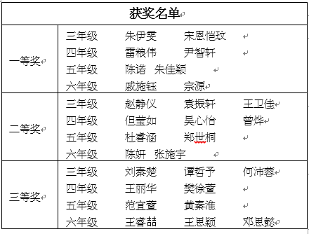小学英语组举行的“英语小报制作比赛“,获奖名单如下