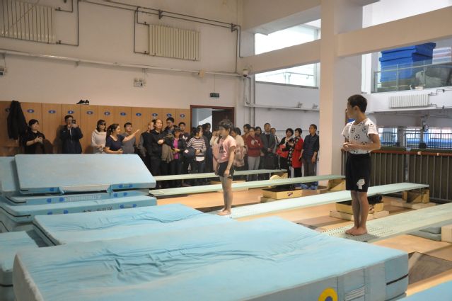 上午第三节课全体教练员自主进入各班听课,教练员们听课非常认真,对课堂教学实况进行了记录。课后教练员与教师进行了交流,对任教老师的课堂教学情况以及班主任的班级管理情况进行评价。同时对学校教学管理工作提出建议与意见。中午13:00全体教师观摩训练课。首先来到跳水馆,只见运动员们一个个生龙活虎,在教练员张月萍、董盛的指导下,认真训练。运动员们高难度动作博得老师们的热烈掌声,看到自己所教的学生如此艺高人胆大,大家也倍感自豪。张玉萍教练在训练之余为大家介绍跳水项目的特点以及运动员训练情况,感谢老师们在课堂上的辛苦付出,表示要多多联系,共同育人。接着全体老师来到击剑馆观摩了巩秀红教练执教的女子重剑训练课和吴玲玲教练执教的女子花剑训练课,只见两位教练员已是汗流浃背,仍在不停指导训练。看到教练员、运动员的刻苦训练,老师们深深体会了教练员、运动员的辛苦和不易。今年是我校学训融合启动年,学校重视教学、训练的有机结合,开展了一系列学训融合活动。学校将以此为契机进一步形成齐抓共管机制,努力培养符合新时代要求、全面发展的青少年运动员。