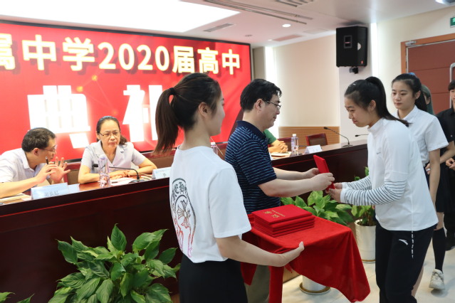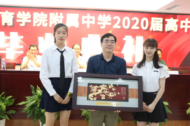 离别之际,高三毕业生代表还为母校赠送了纪念品,附属学校党总支书记、校长吴建华代表学校接受了捐赠,并向同学们表示感谢!