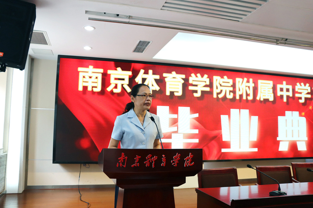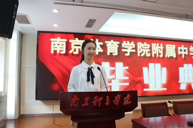 附属学校党总支副书记、副校长谢长虹宣读2020届高中毕业生名单。随后,2019年全国技巧冠军赛成年组精英组大集体第一名丁雯妍代表高三毕业生发言,她回顾了在母校的学习经历,感谢班主任及任课教师的无私关怀和谆谆教诲。高三语文教师施书宇代表任课教师发言,她祝贺高三学生即将开始人生梦想的新起点,鼓励同学们在今后的征途中更有敢担使命、敢负重任的豪情与理想。
