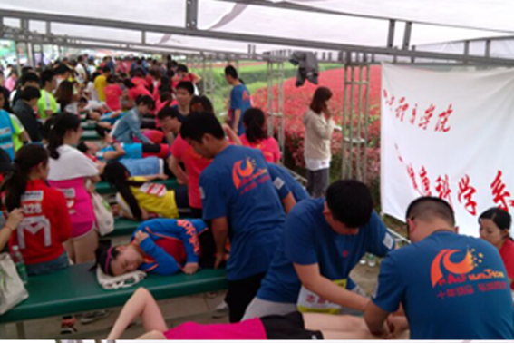 4月19日上午,在第十届“扬州鉴真国际半程马拉松赛”中,我院与赛事组委会合作,派出志愿者队伍为赛事提供赛后恢复服务。