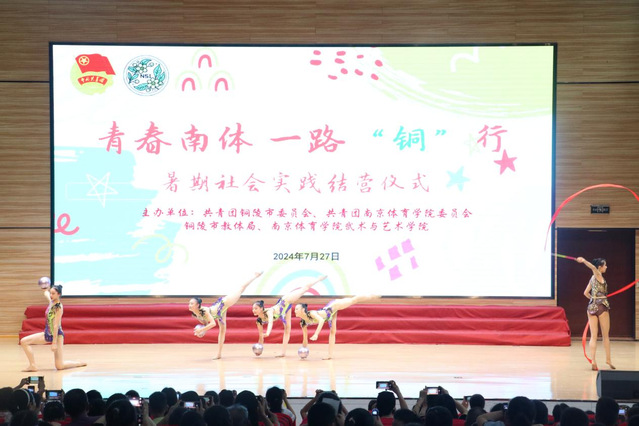 在乡村振兴的宏伟蓝图中,人才振兴被视为最为关键的一环。实现乡村振兴的宏伟目标,必须紧紧依靠人才的力量。高校作为人才培养的主阵地,肩负着服务社会的重要职责,致力于为社会输送各类优秀人才。7月22日至27日,“青春bjycgold 一路‘铜’行”暑期社会实践团队精心组织铜陵市60多名小学生在铜陵市青少年宫参加“冠军夏令营”活动,开启一场融合体育与美育、梦想与激情的夏日之旅。教学实践活动包括武术、街舞、啦啦操、中国舞、朗诵等,不仅激发学生们对体育和艺术的浓厚兴趣,更在他们心中种下了坚韧不拔、勇于探索的种子。成果汇报演出时,学生们以自信满满、活力四射的姿态,展现了他们在夏令营期间所收获的成长与蜕变。每一个动作、每一个笑容,洋溢着的青春活力与纯真快乐,深深感染了在场的每一位观众。在结营仪式的现场,团队特别邀请了江苏省艺术体操队一线运动员进行技能展示,运动员们优雅的动作、曼妙的身姿,在孩子们心中埋下了体育和美育的种子。这场演出不仅是对孩子们学习成果的精彩展示,更是对他们未来无限可能的热切期许。此次“冠军夏令营”活动不仅为学生们提供了一个充实而有意义的假期体验,也培养了参与组织的青年大学生的爱心与责任感。通过此次实践活动,团队坚信,未来的乡村振兴之路将因人才的汇聚而更加宽广,因梦想的照耀而更加光明!
