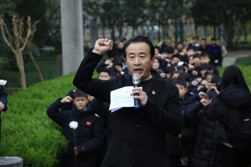 历史是不容忘却的,怀着沉重的心情,全体师生手拿白花,静静肃立,寂静无声是对死难者同胞们的深切哀思。在乒羽学院院长冀方新的带领下,在场所有人员一同举起右拳,庄严宣誓:“铭记历史,不忘国耻!奋发图强,振兴中华!”誓言铿锵有力,每一字句都充满了对历史的反思和开创未来的决心。这一刻,每个人的心中都充满了对祖国的热爱和对未来的憧憬。悼念活动的最后,师生们将手中的白花轻放在纪念碑前,并沉重鞠躬。这一刻,所有人的心中都充满了对逝者的哀悼和对历史的敬畏。