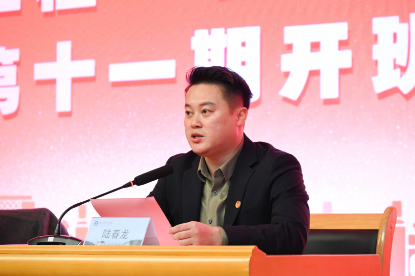 校团委书记陆春龙发表讲话,他强调入选青马工程培训班既是一种荣誉,又是一种责任。他对第十一期“青马工程”培训班学员提出以下要求,一是要学懂悟透原文原理;二是要积极实践敢于创新;三是要立足专业开拓视野。最后他预祝本次青马工程培训班取得圆满成功。