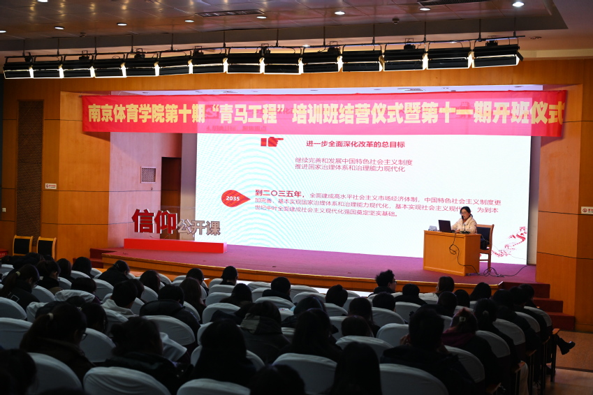 仪式结束后,马克思主义学院马原教研室主任孙凤兰开启了第十一期“青马工程”的第一课,她深入浅出地引领学员们学习了党的二十届三中全会精神,从改革开放的光辉历程出发,以中国式现代化的宏伟蓝图收尾。她鼓励学员们以习近平新时代中国特色社会主义思想为指引,勇往直前,为全面建成社会主义现代化强国、达成第二个百年奋斗目标、实现中华民族伟大复兴的中国梦不懈奋斗。