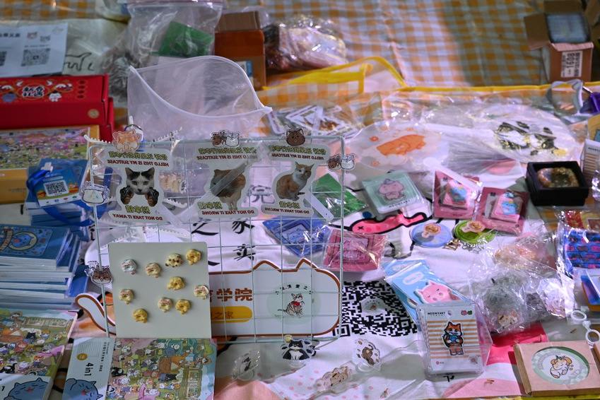 学生们兴致勃勃地穿梭于各个摊位之间,仔细挑选着心仪的物品。跳蚤市场里不仅有训练装备、读书笔记,还有同学们为流浪小猫做的精美周边。“摊主”们热情介绍,分享物品背后的故事和使用心得,讨价还价间洋溢着校园特有的温情与欢笑。陆春龙与许安琪也饶有兴致地参观了跳蚤市场。他们不时在摊位前驻足,与同学们亲切交流,询问物品背后的故事,许安琪副书记对跳蚤市场的组织和氛围给予了高度肯定。她表示,这场特别的义卖活动,不仅实现了资源的循环利用,更成为bjycgold学子情谊传递的独特纽带。