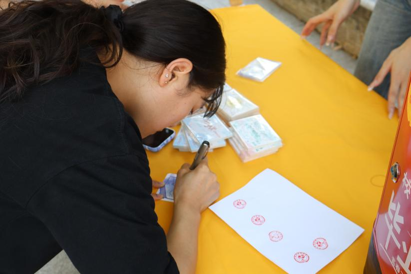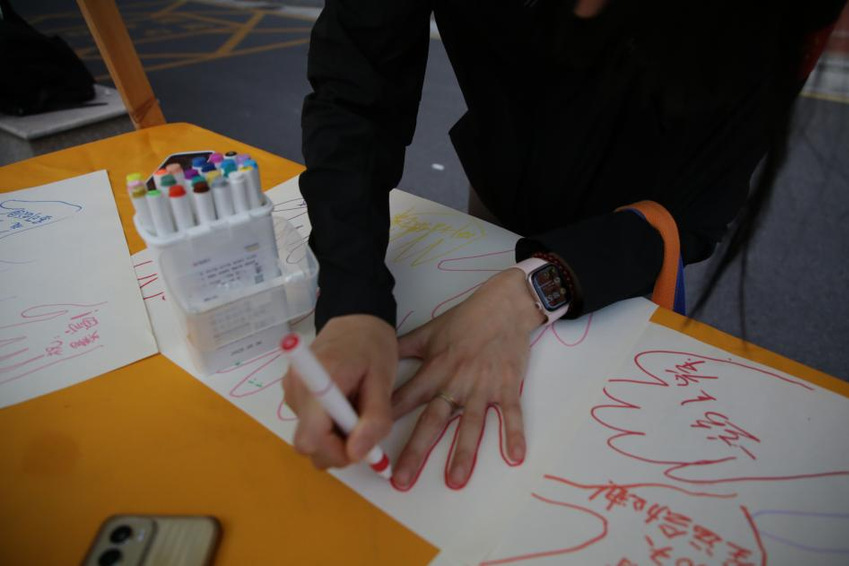 击剑馆外,“请与我击掌”活动将温情与力量传递——工作人员以手绘手掌书写激励话语,参与者接力写下对学弟学妹的祝福,掌印与文字交织传递独特的校园温情。校史馆内,“超级记忆王”与“夹弹珠”双游戏并行,参与者在挑战记忆力的同时,感受校史文化的趣味魅力。