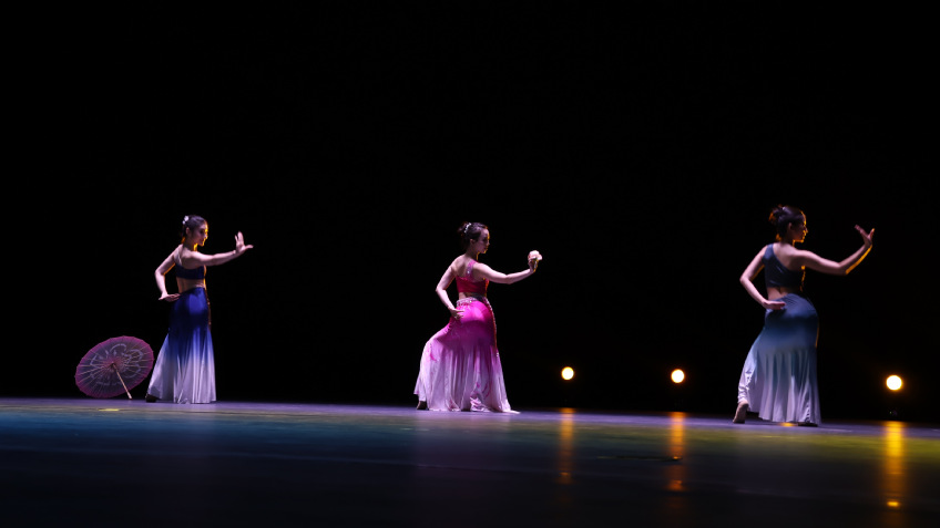 演出融合现代舞、民族舞、古典舞等多元艺术形式。开场舞《启航》以蓬勃姿态锚定崭新希望,随后《炽焰之舞》《界·涌》《一路生花》等十多个精心编排的节目轮番登场,生动诠释了竞技场上的拼搏、协作与荣光。整场演出高潮迭起,学子们用精湛的舞技、饱满的激情和深刻的理解,将对全运健儿的热血与梦想的崇高敬意融入每一个舞步,展现了扎实的专业功底和饱满的艺术表现力,赢得现场观众阵阵热烈掌声。演出最终在充满青春憧憬的《我的未来式》中圆满落幕。