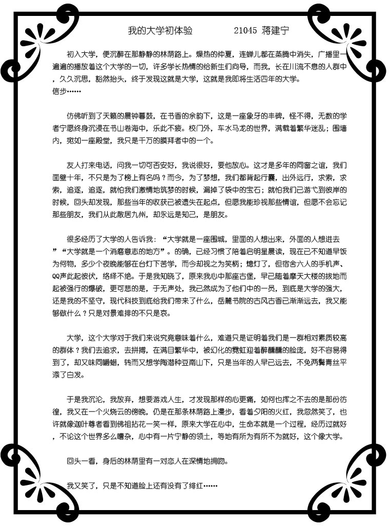 《我的八分之一》韩玲     19             stay hungry  stay  fooolish》张咪  29 《我的大学初体验》蒋建宁 20