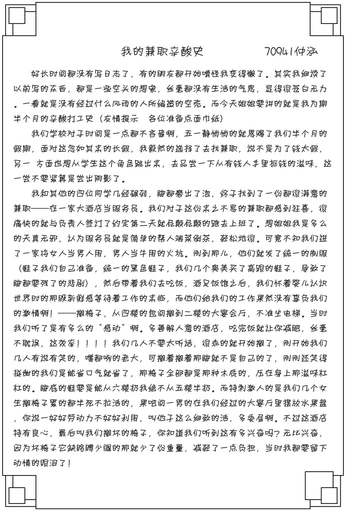 《我的兼职辛酸史》仲泓   16             《教师初体验》傅炜杰  27