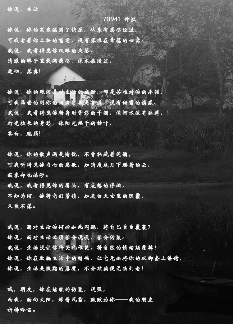 其实准确来讲,是你跟我比较熟。我是直到中考,就是让我感觉到“活着是一件多不要脸的事”的那次考试,监考老师告诉我选择题涂卡不能用水笔而你挺身而出的时候,才真正知道你的名字的。当然说到这儿,你千万不要怪我之前跟你一直是假熟,因为我是觉得,有许多认识并叫得出名字的人不一定是朋友,而有些不一定知道名字的,或者只是偶尔联络的,却可能值得我付出生命以外的一切。比如你。