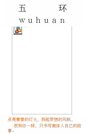 当我写下这个题目的时候,不免有些心虚:是不是太张扬了一点?五环梦似乎只属于刘翔们啊,他们用汗水浇灌着中华民族的体育之花,他们是祖国的骄傲!可是,我却始终心有不甘:我为什么就不可以拥有属于自己的五环之梦呢?也许我的梦微不足道,也许我的梦不值一提,但是我曾经拥有过,已经无悔矣。