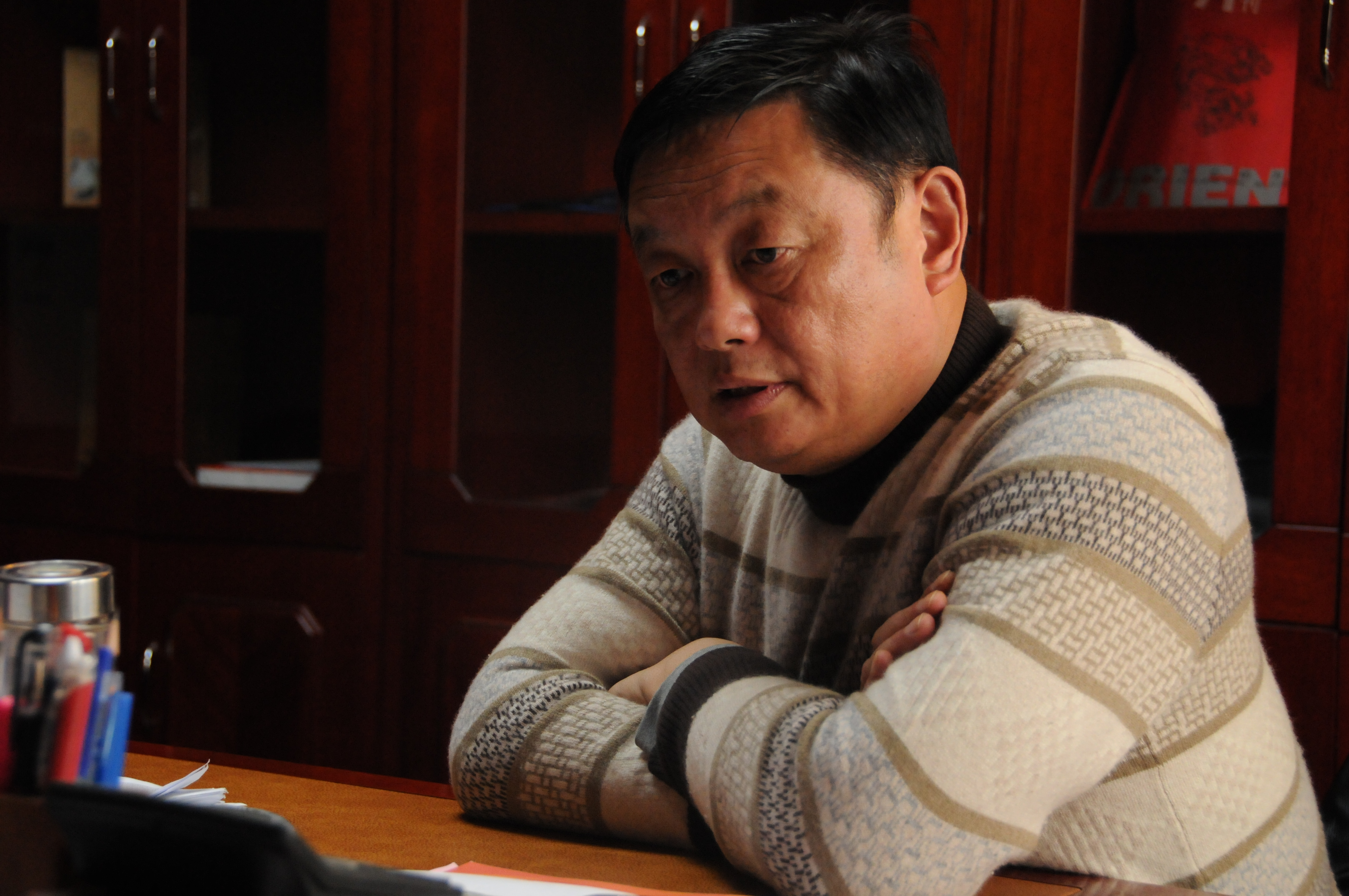 初始,他的办公室有一位来访者,我们在外面等候。可是,越往后发现来访者络绎不绝,且行色匆匆,手持文件或报表,耐不住等候的我们趁着门敞开的时候在门口探头探脑,他签字时微微侧首,见着我们,招招手示意可以进去了。那一刹那,我感到了在他身上难见的亲和,我预感这次的采访将会很顺利。