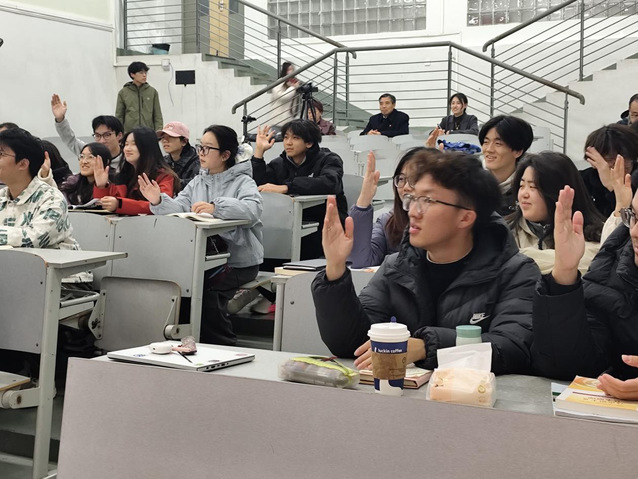 最后,陆春龙分享了毛泽东的《卜算子·咏梅》给在场的同学们。结合国际国内形势,他鼓励大家要为国争光,勇于担当,蔑视困难,敢于战胜一切困难。陆春龙为在场的同学们心中撒下了奋斗、坚韧、爱国与担当的种子。