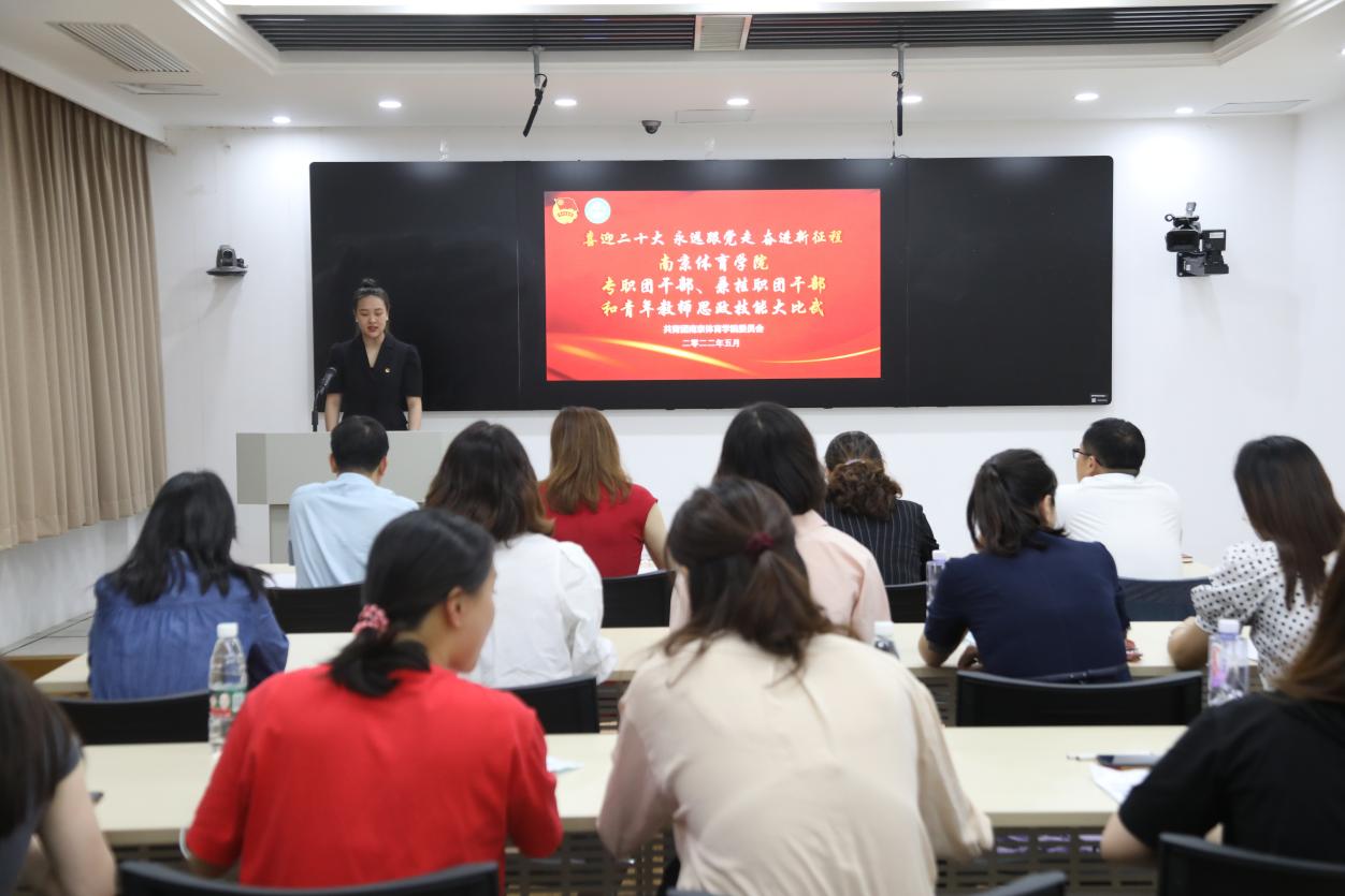在全校上下深入学习贯彻习近平总书记在庆祝中国共产主义青年团成立100周年大会上的重要讲话精神之际,我校开展“喜迎二十大、永远跟党走、奋进新征程”团干部思政技能大比武专职、兼挂职团干部和青年教师专项赛。校党委常委、副校长李江出席本次活动。党政办副主任张珏,党委宣传部、统战部副部长刘洪磊,图书馆副馆长李明华担任现场评委。