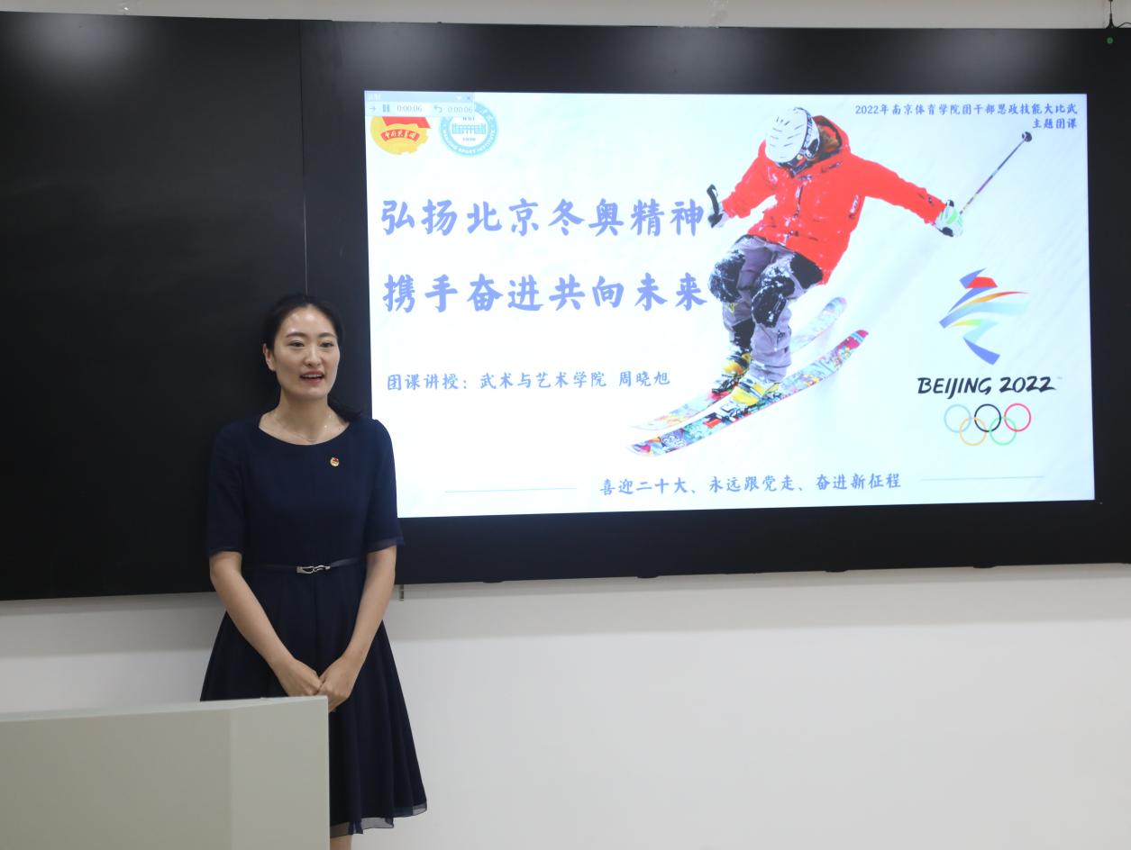 该主题思政课以“弘扬北京冬奥精神,携手奋进共向未来”为主题,号召全体团员青年弘扬北京冬奥精神,将胸怀大局、自信开放、迎难而上、追求卓越、共创未来的北京冬奥精神融于行动中,携手奋进,共同争做堪当民族复兴重任的时代新人,在中华民族的伟大复兴之路上踔厉奋发,成就出一番自己的作为!