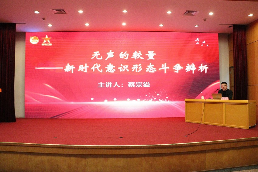 蔡宗溢教授从“当代意识形态斗争由来及演进”“新时代意识形态斗争的挑战”“新时代意识形态本质的解析”“新时代意识形态工作的启示”四个方面进行授课。