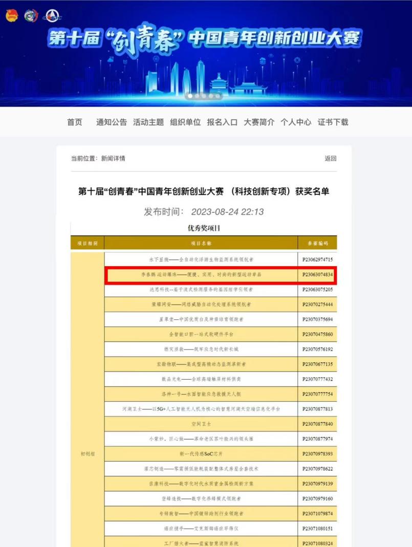 我校项目荣获第十届“创青春”中国青年创新创业大赛国赛优秀奖