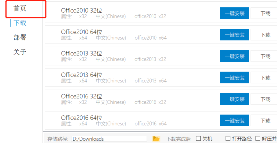 1. 首先通过客户端安装Office,安装成功后点击首页按钮