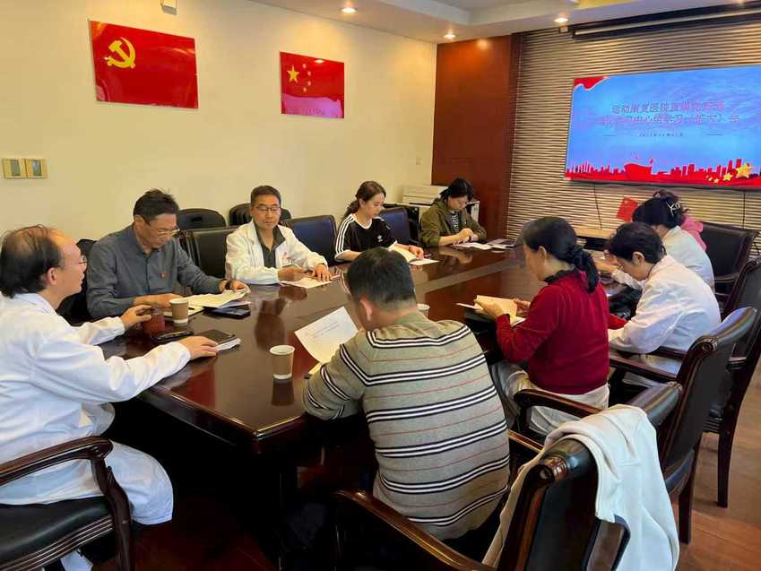10月31日,运动康复医院直属党支部组织召开理论学习中心组(扩大)学习会议,围绕“深入学习贯彻二十届四中全会精神”开展专题学习研讨。离退休党总支书记刘桂彩、离退休工作处综合科科长杨诚列席旁听并作指导。运动康复医院直属党支部部分党员参加学习。