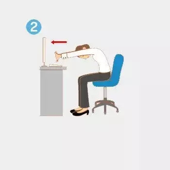 ①椅子不要做得太深,坐椅子的3分之1的位置。然后,力量集中在腹部,右脚往前伸,稍稍向上抬起。