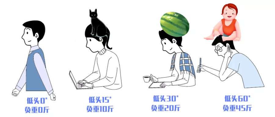 玩手机、玩游戏、工作用电脑,长时间低头状态下,颈椎受力会非常大。