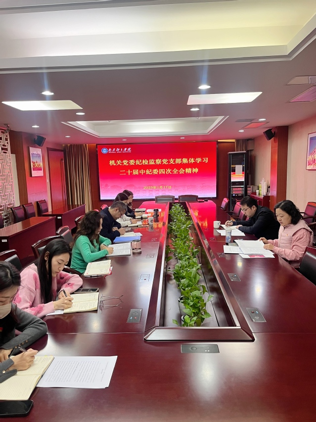 2025年1月17日上午,机关党委纪检监察党支部召开党员大会,集体学习二十届中央纪委四次全会精神,传达学习校九届党委三次全体会议精神。校党委常委、纪委书记、派驻监察专员刘海宁以普通党员身份参加会议。校纪委副书记、纪委办主任、党委巡察办常务副主任、党支部书记陈蕾主持会议。