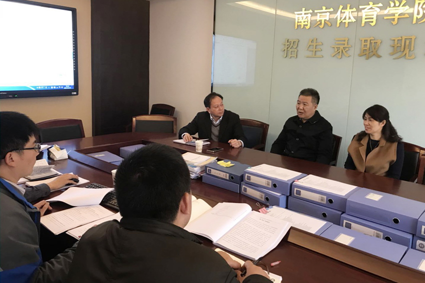 在审核评估工作指挥部办公室,朱传耿书记一行听取了教务处处长严海平关于自评报告支撑材料整理情况的汇报,认真检查了自评报告支撑材料整理情况,核查了支撑材料文件盒数量,翻阅了部分支撑材料,听取了体育系、运动系、运动健康科学系、民族体育与表演系、马克思主义学院和休闲体育系近期评估工作汇报,对各单位反映的问题一一进行解答。