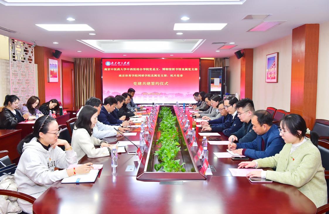 我校机关党委、网球学院直属党支部与南京中医药大学中西医结合学院党总支、博物馆图书馆直属党支部举行党建共建签约仪式