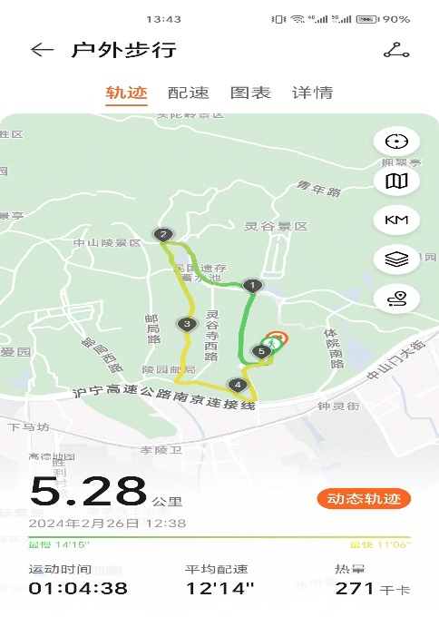 校党委常委、副校长、协会会长鲍勤参加记录行走轨迹的“云健走”活动。部分会员赴方山国家地质公园参观了历史悠久的定林寺和 “世界第一斜塔”定林斜塔,探秘了防空洞,近距离观赏了火山口和硅化木,在活动终点玻璃栈道俯瞰了江宁大学城的全貌。
