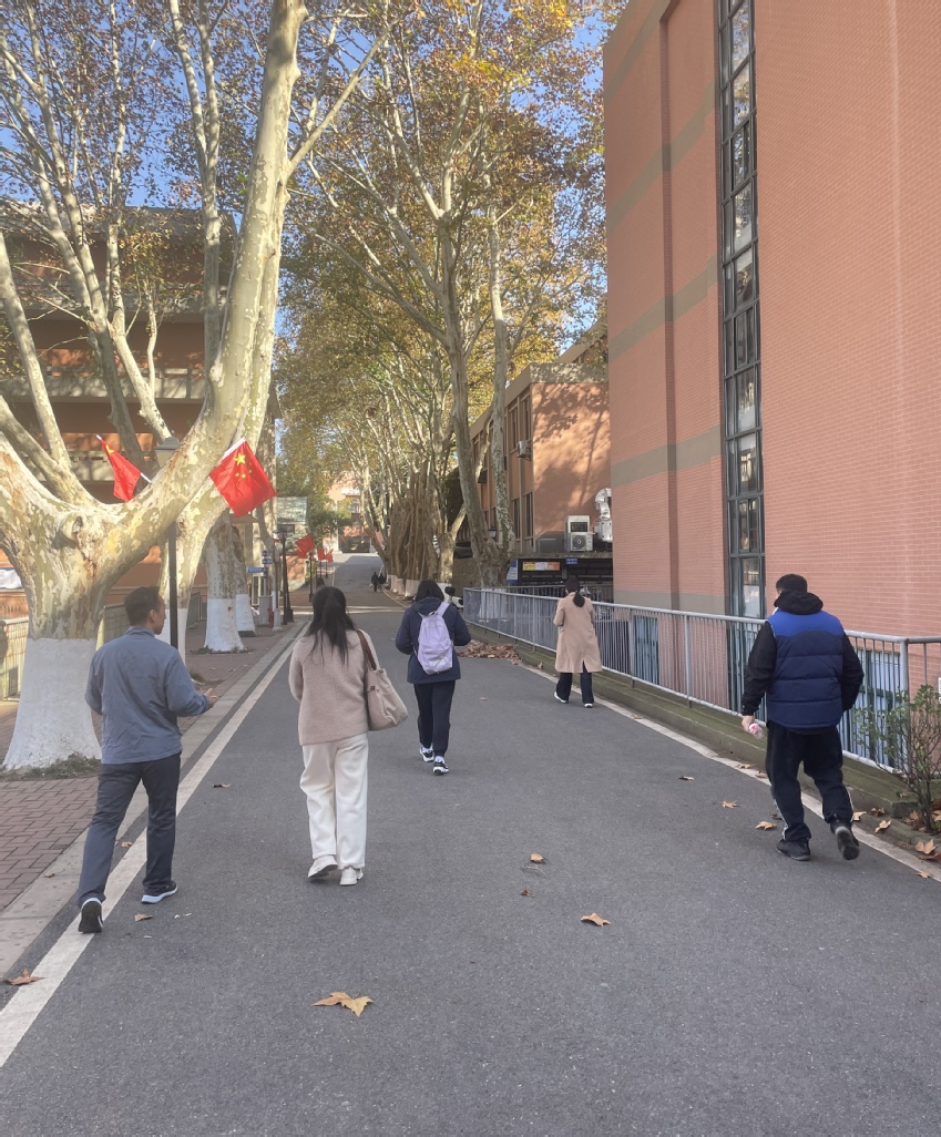 活动从学校教学实验楼出发,途经教学办公楼、世界冠军大道、奥运冠军大道和操场,再回到教学实验楼,一共绕行了3圈,全程用时大约需要40分钟,路程约3公里。天气虽冷,但大家心很暖,教师们沿着梧桐大道昂首阔步,按照既定路线,向着目标不断前行。一路上大家享受着健步走带来的欢乐和惬意,形成一道与自然和谐相处的靓丽风景线。