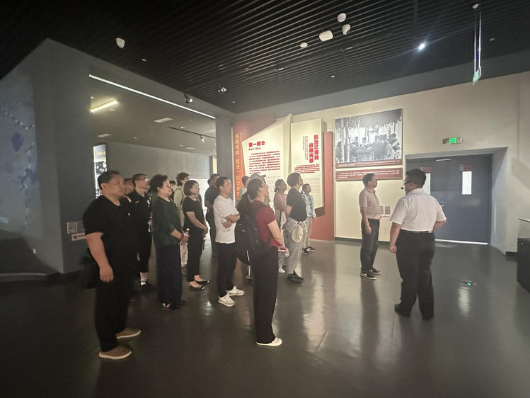 活动首站来到渡江战役纪念馆。在恢弘的“胜利之师”浮雕前,教师们庄严肃立,通过沉浸式全景影像、战场电报手稿等千余件珍贵文物,重温“钟山风雨起苍黄,百万雄师过大江”的壮阔史诗。