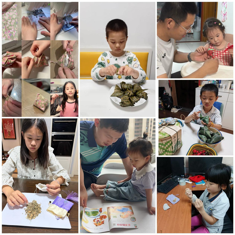 活动得到了广大教职工的积极响应,家长和孩子们热情高涨,大家纷纷在家中体验端午习俗,感受节日魅力。活动形式丰富多样,有亲子包粽子、端午香囊DIY、投壶挑战以及亲子朗读端午节主题绘本等,充分展现了亲子间的默契和对传统文化的热爱。