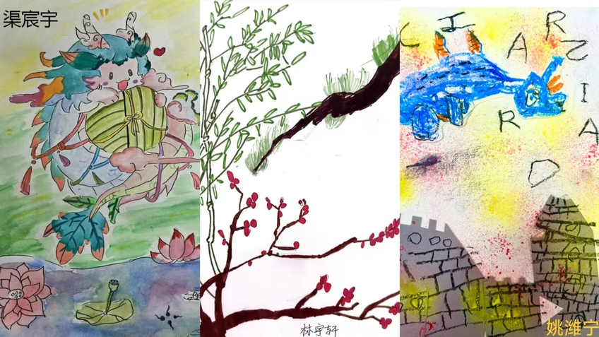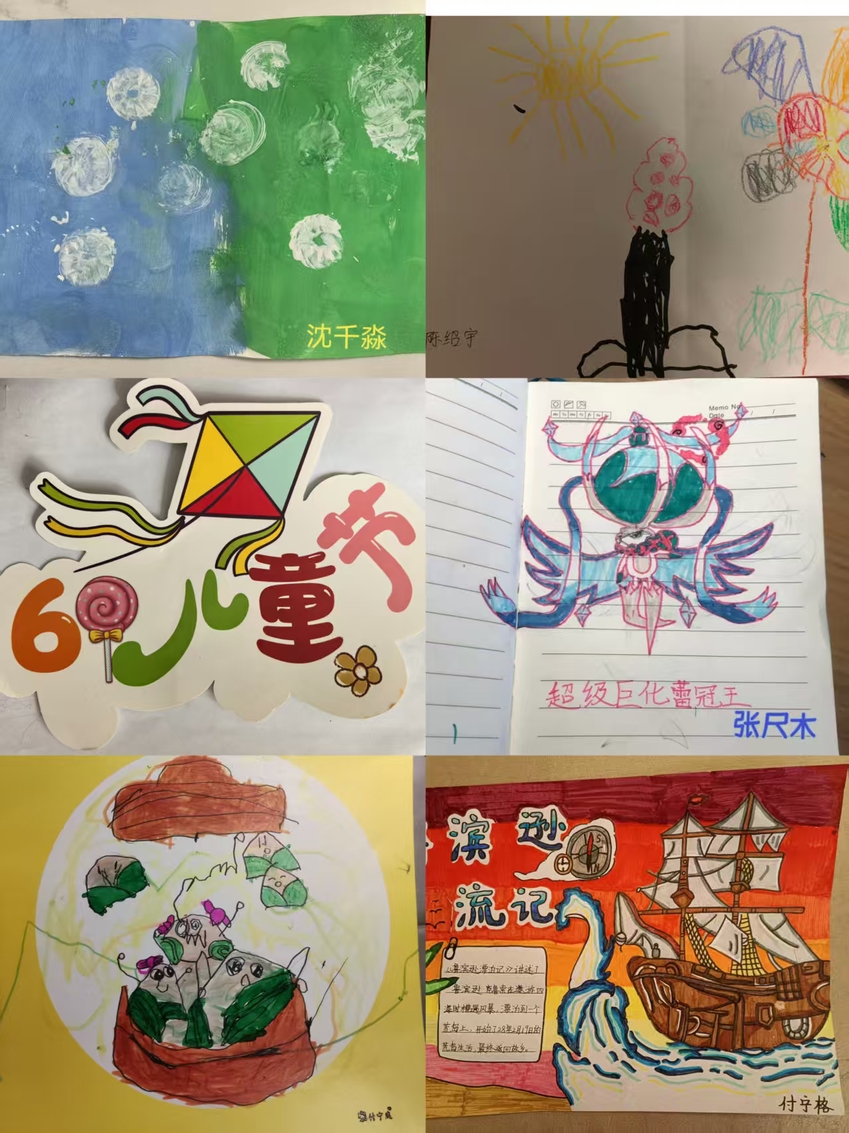 孩子们围绕节日主题,以丰富的想象、缤纷的色彩、生动的笔触,描绘出他们心中的美好世界与童年梦想,表达了对幸福生活的热爱和对未来的憧憬。作品内容积极向上,形式多样,体现了孩子们良好的审美素养和创造力。