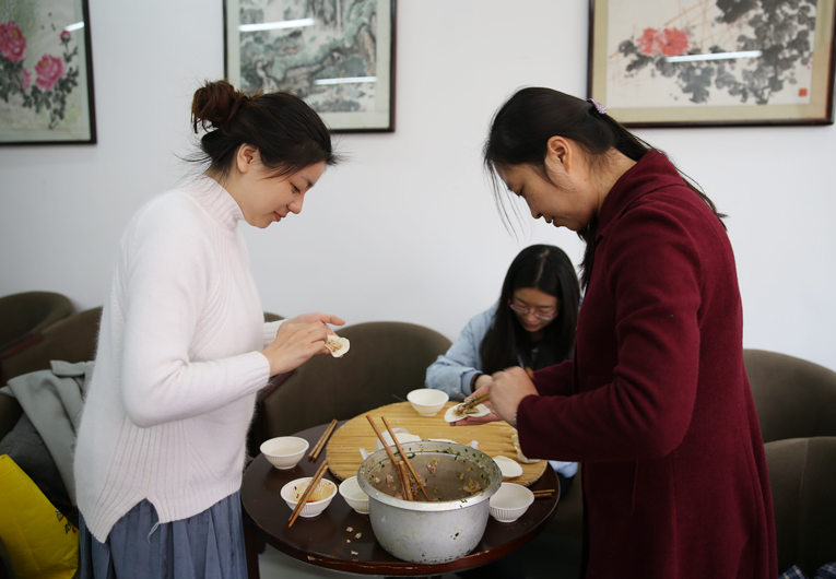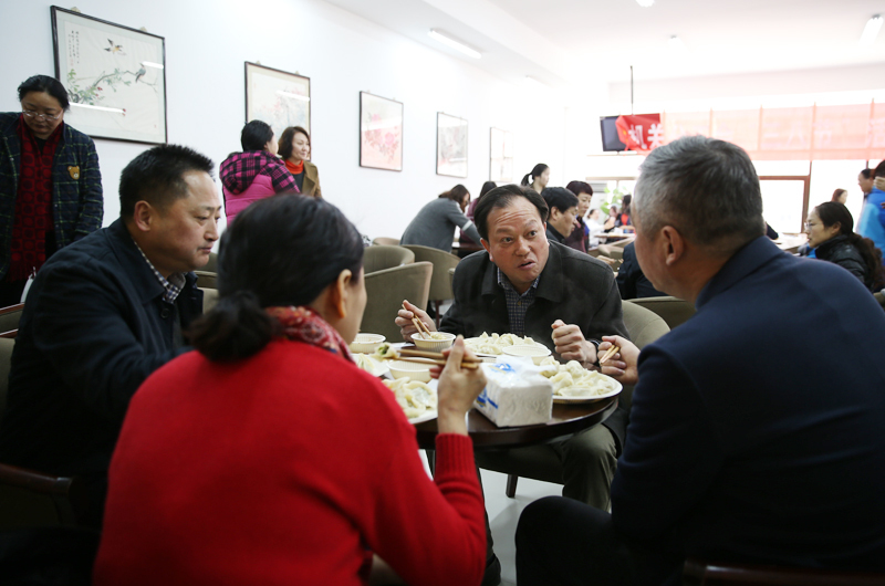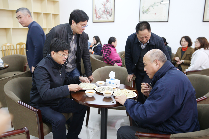 院领导杨国庆和汤岩与大家一起品尝饺子