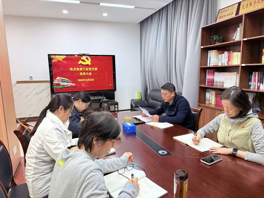 10月28日上午,机关党委工会党支部在工会会议室召开党员学习大会,专题学习中国共产党二十届四中全会精神。支部书记张健主持会议。